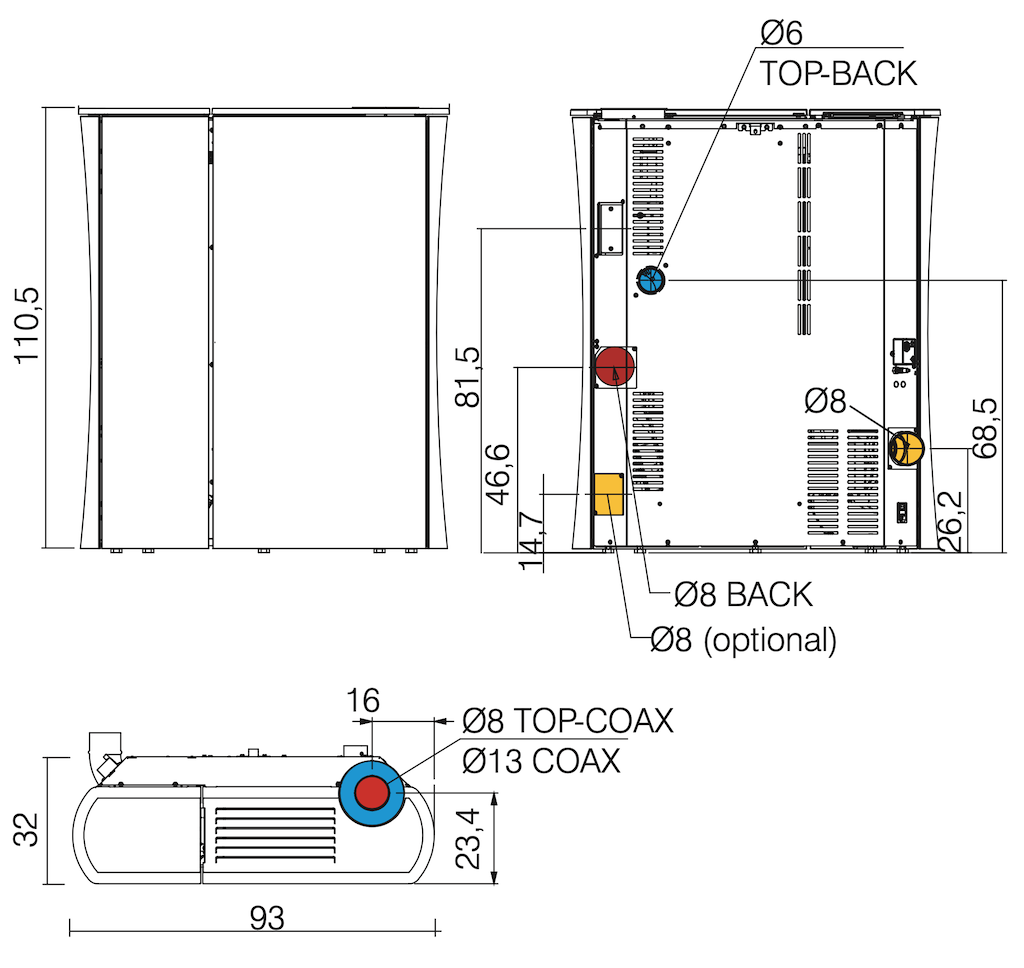 - Uscita fumi: Ø 8 cm posteriore o superiore