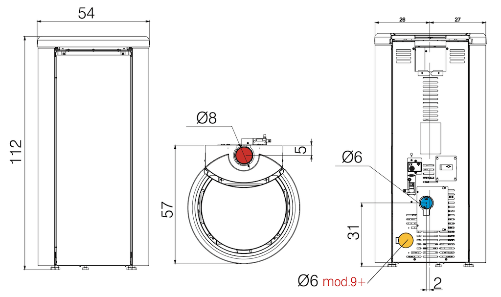 - Uscita fumi: Ø 8 cm superiore